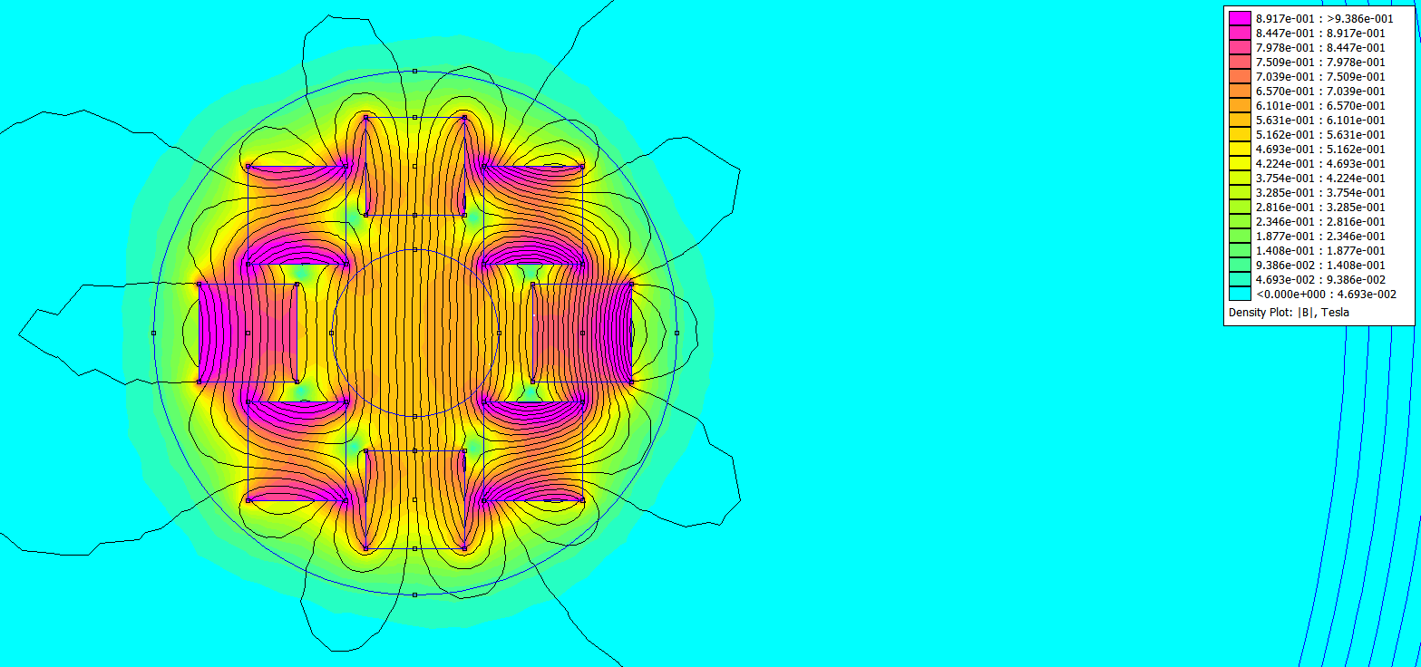 According to FEMM if one were to utilize a certain design (using 25mm cubes as well as other components), the output in a central bore section is