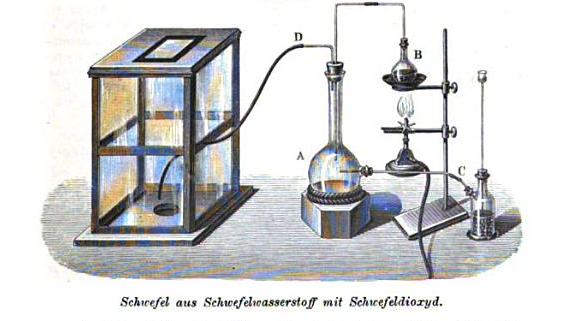 Quote: Originally posted by Formatik  | | Another way to do it is to get SO2 and H2S to react. One could use an apparatus similar to the one shown below seen in Lehrbuch der anorganischen