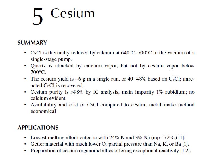 Interesting! Reduction of CsCl with Li and removal of Cs by vacuum distillation, if I understand well? Could you provide some more details, please?