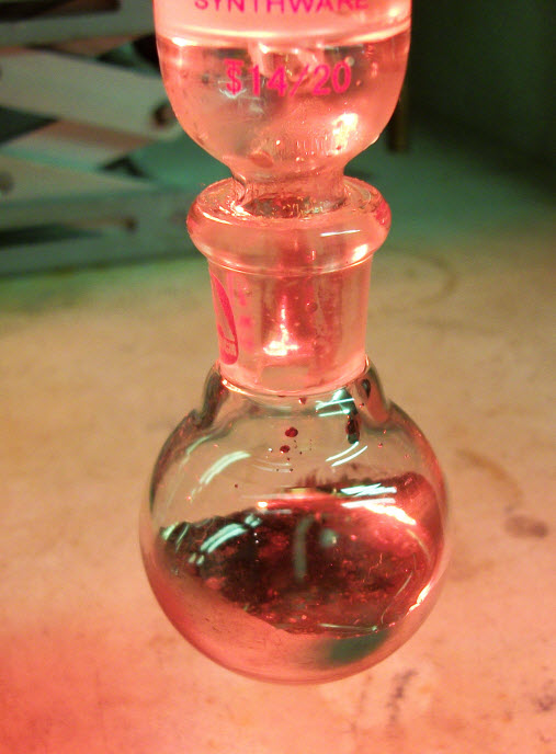 This is a shot of the metal from my first production run. Pre-drying of the reactor, flame drying of the glassware and argon for the necessary