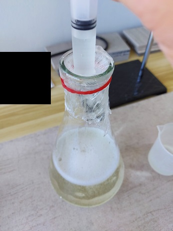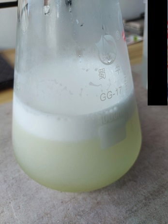 Pic 6 stop heating after foaming ceased; solution is pale yellow