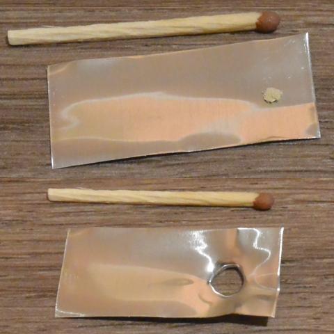 A light-brown subs is more explosive than dark-brown. In photography No. 3, I slowly heated 3-4 mg of the subs on the 0.1mm aluminum foil and it