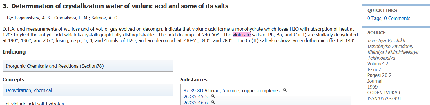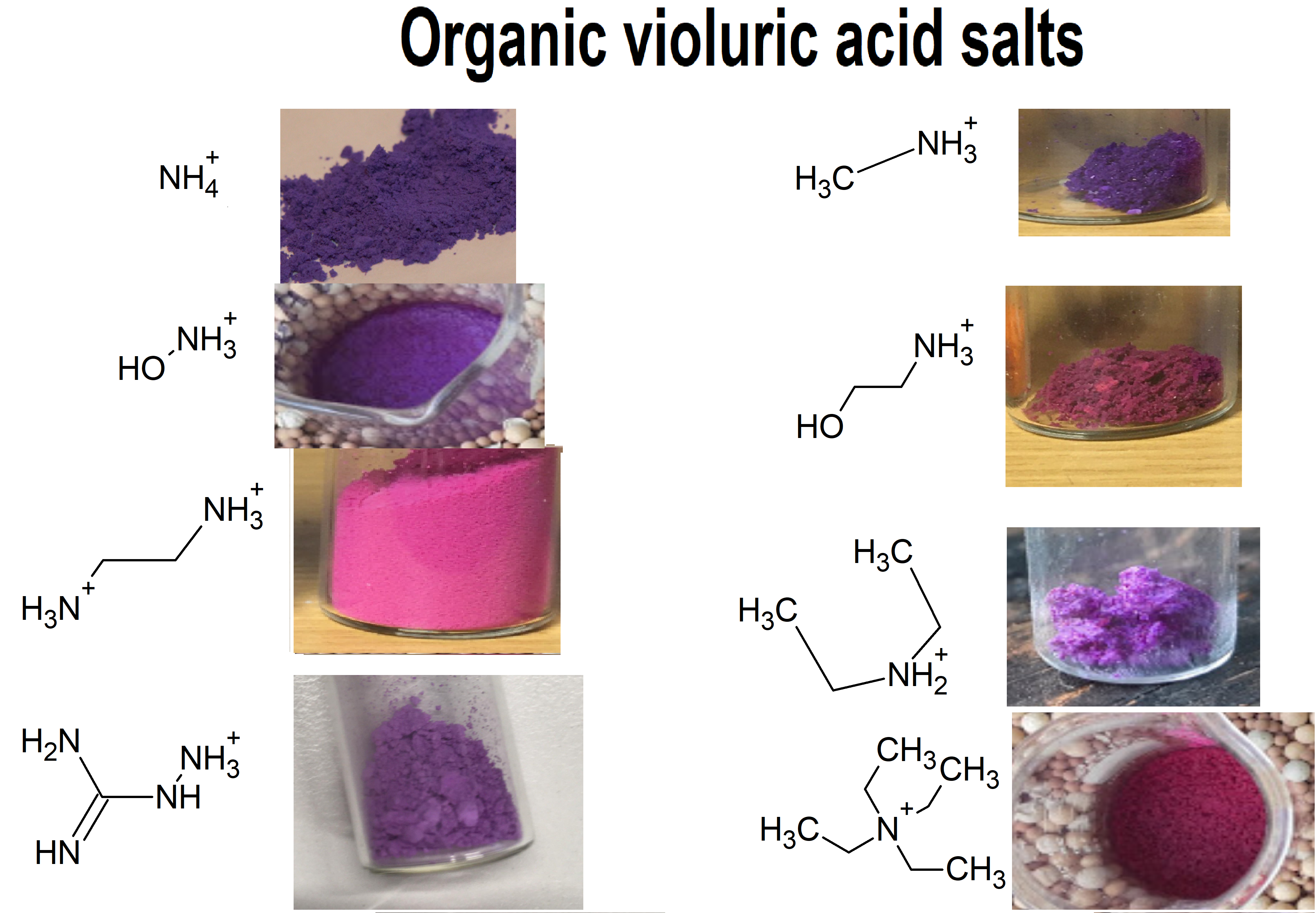 Also thanks to user H0lx for giving me the idea to put these tables together, aswell as making many of the organic salts of violuric acid (pyridine,