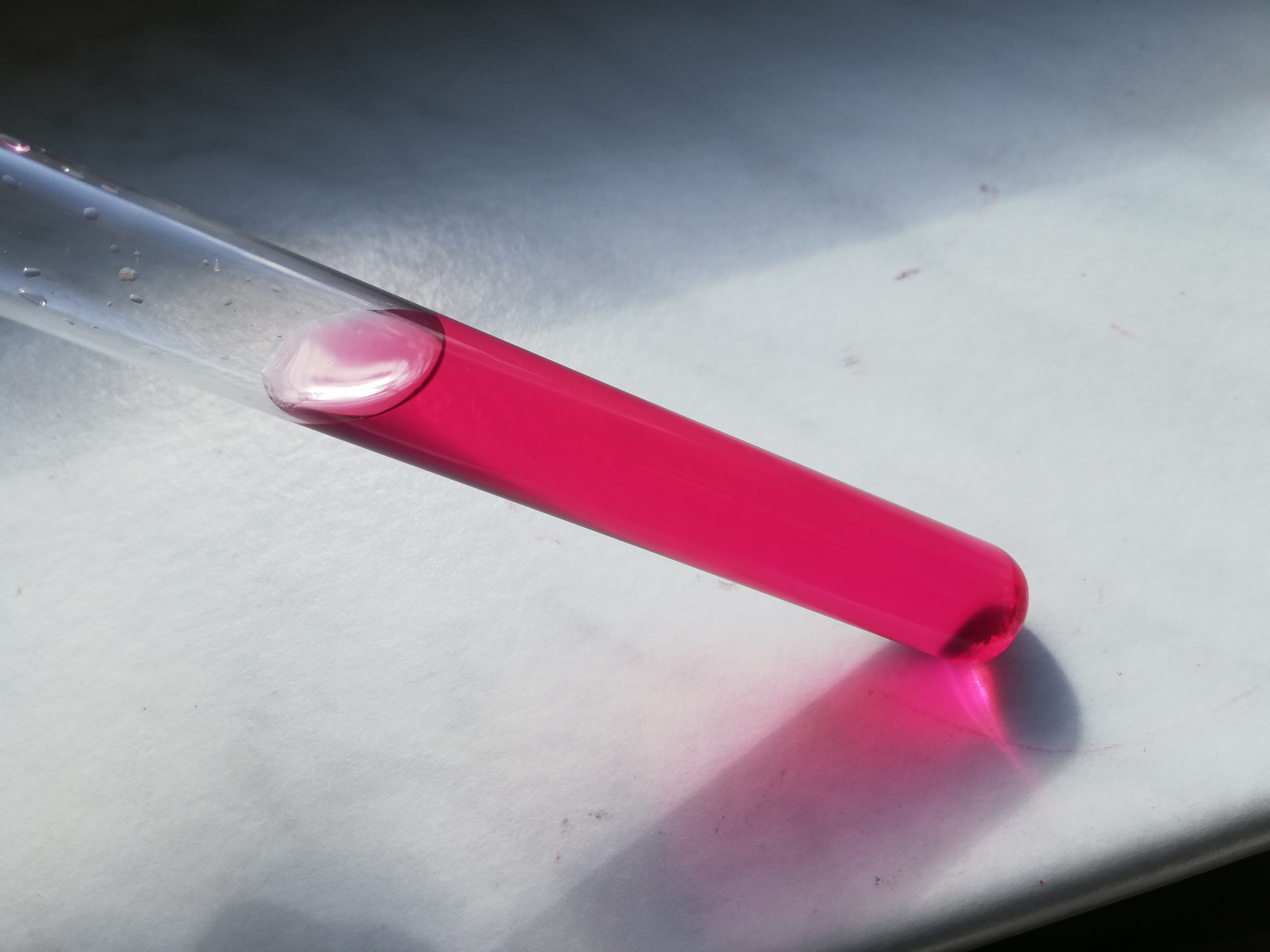 I also measured the pH of the liquid at the end, after adding the 2.5 grams of NaOH. The liquid has a pH of 11 to 12, according to my pH-paper. This