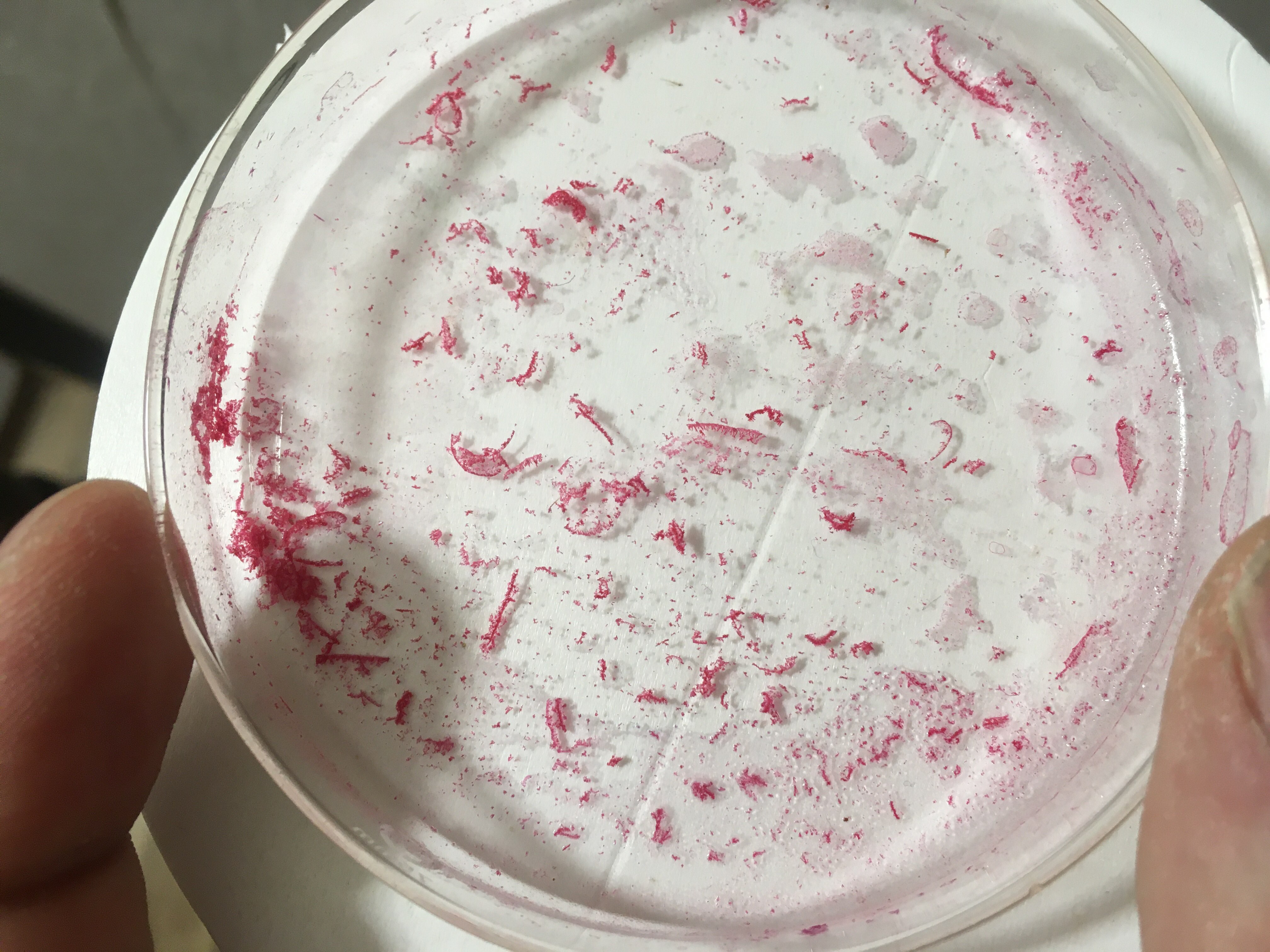 Left is the tetra/pentahydrate (still a bit wet), right anhydrous