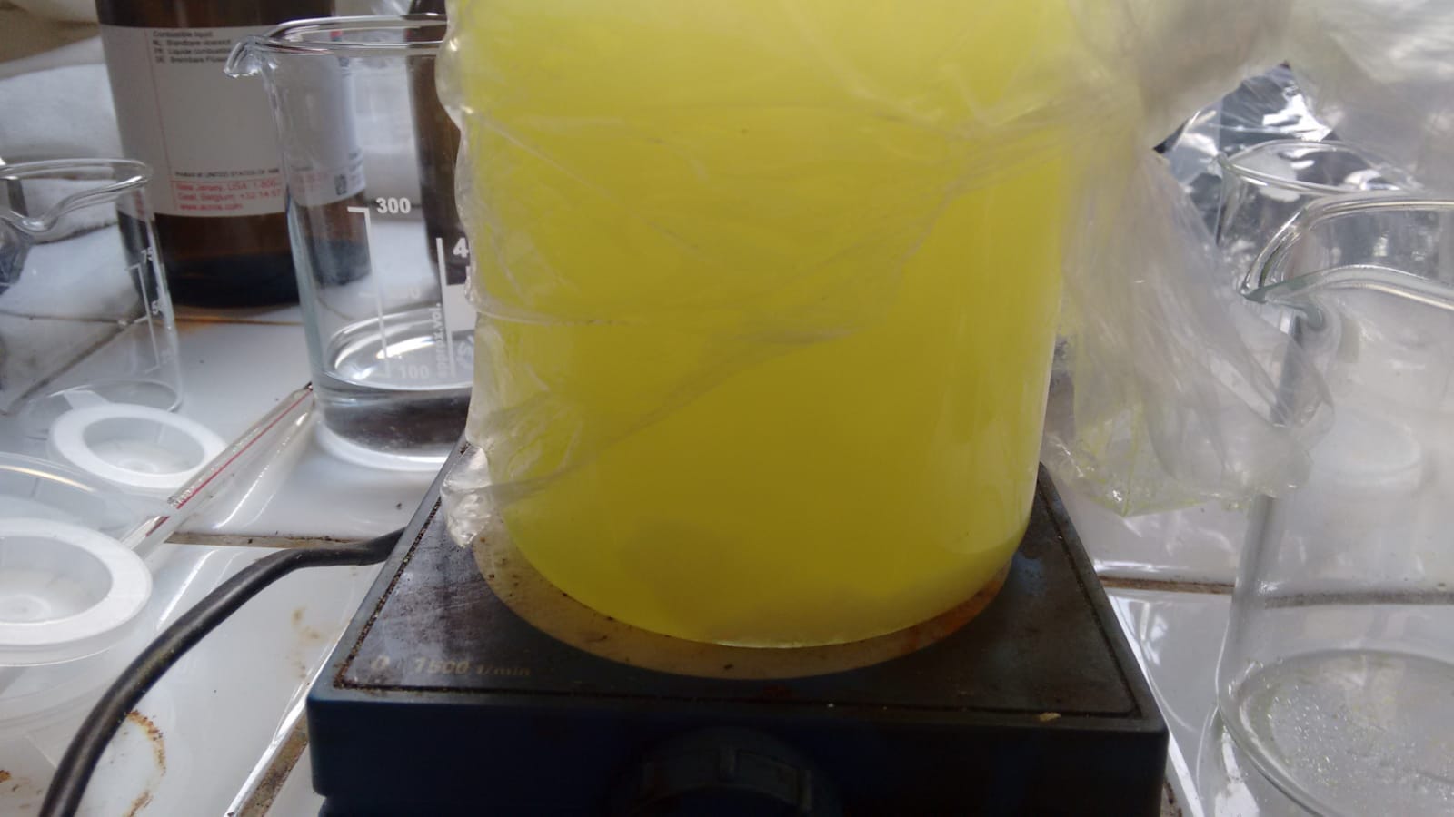 100 degrees water bath while insulated to ensure proper heating of the whole mixture. The mixture was not stirred. When carbon dioxide evolution