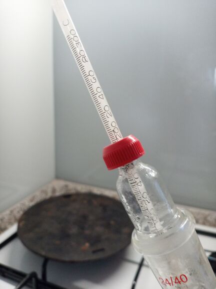 The thermometer upto 300 C was placed in the side arm of the RFB and submersed into the liquid with its bulb close to the flask bottom so it stays