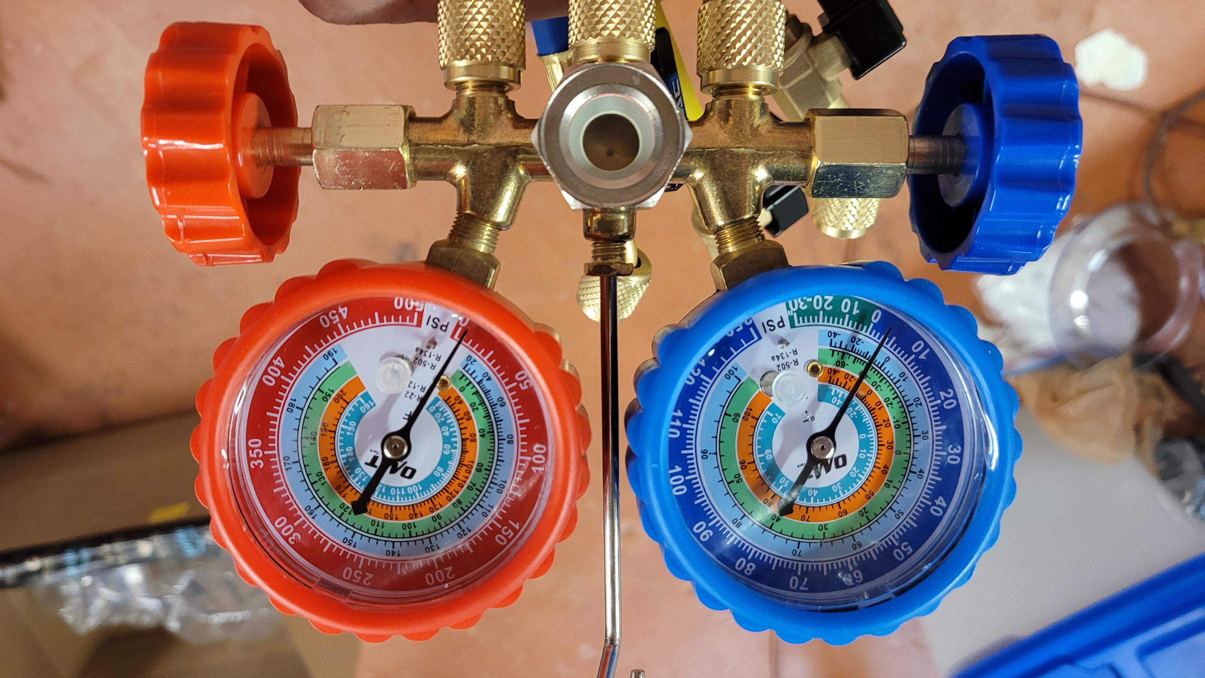 estimate a high side pressure of 150~200psi, low side pressure of -4 to -2 inhg, and a flow rate of 40-90g per minute. At the normal operating ranges