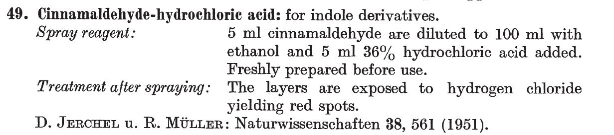Cinnamaldehyde/HCl as TLC spray stain for indoles