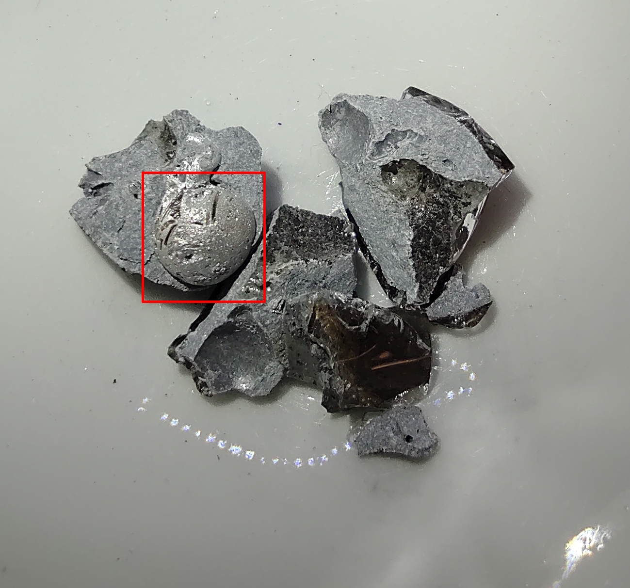 A small globe of aluminium is seen, covered with (I think) is Al2S3.