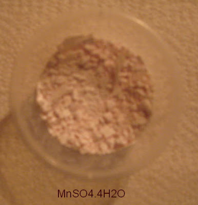 (presumably) MnSO4.4H2O had formed. These are now drying on a hot plate. Weighing tomorrow…