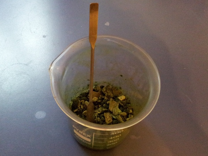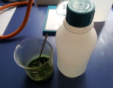 completely dissolved and after that i evaporated the dark green solution to a green, almost dry, mass.