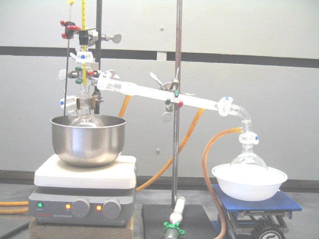 The pot with PCl5 and chloroform was set up for simple distillation to remove the chloroform. An oil bath controlled with a PID was used as a heating