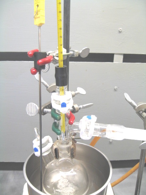 The reaction was very smooth but does generate significant heat. Hence the reflux condenser.