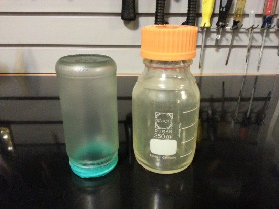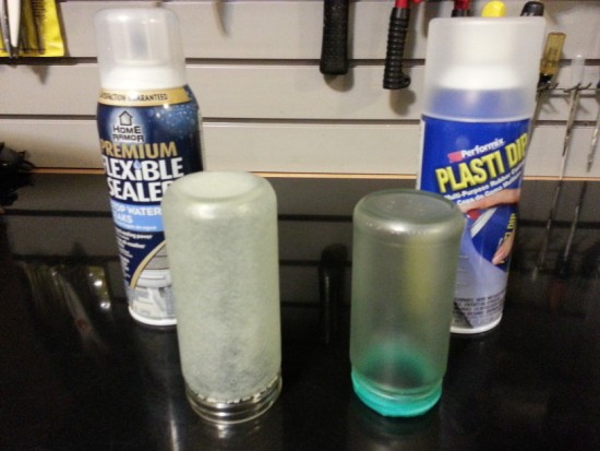 I actually ended up removing the Home Armor coating (damn was it stuck to that glass!) from the larger bottle and Plasti Dipped it.
