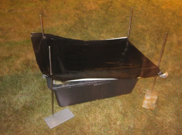 I made an evaporating pool from plastic sheet on an even surface lined with planks with surface area of about 2 square meters and poured about 20