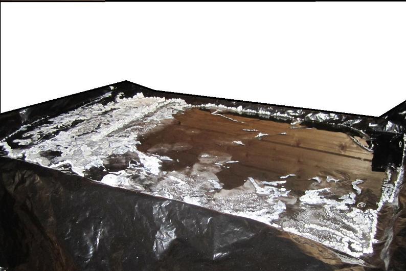 colored plastic sheet, black up, white down, to condense the heat from sun. So far the liquid layer has noticeably decreased, and it should take few