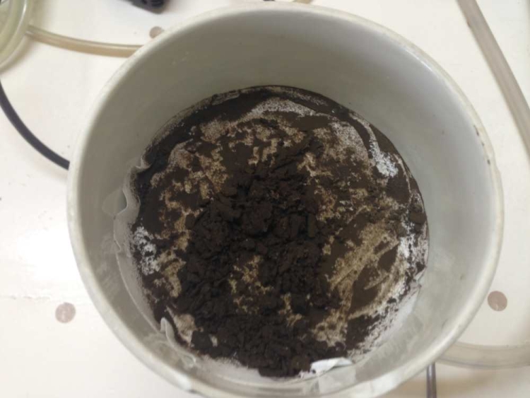 While I have reasonable confidence of the composition of the solids, the brown colouration of the (reduced) liquor is still confusing. Am also unsure