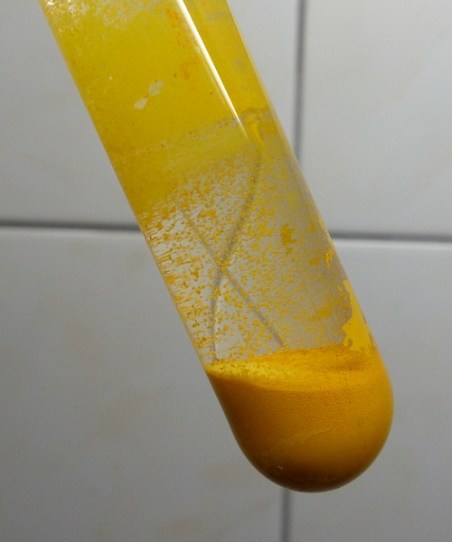 I made a somewhat larger quantity of the yellow compound, such that I can isolate it and do some experiments with it.