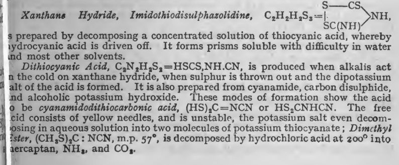 acid. The so-called cyanogen sulphides seem rather uncertain compounds so I did an online search for them to see if anyone had subjected them to