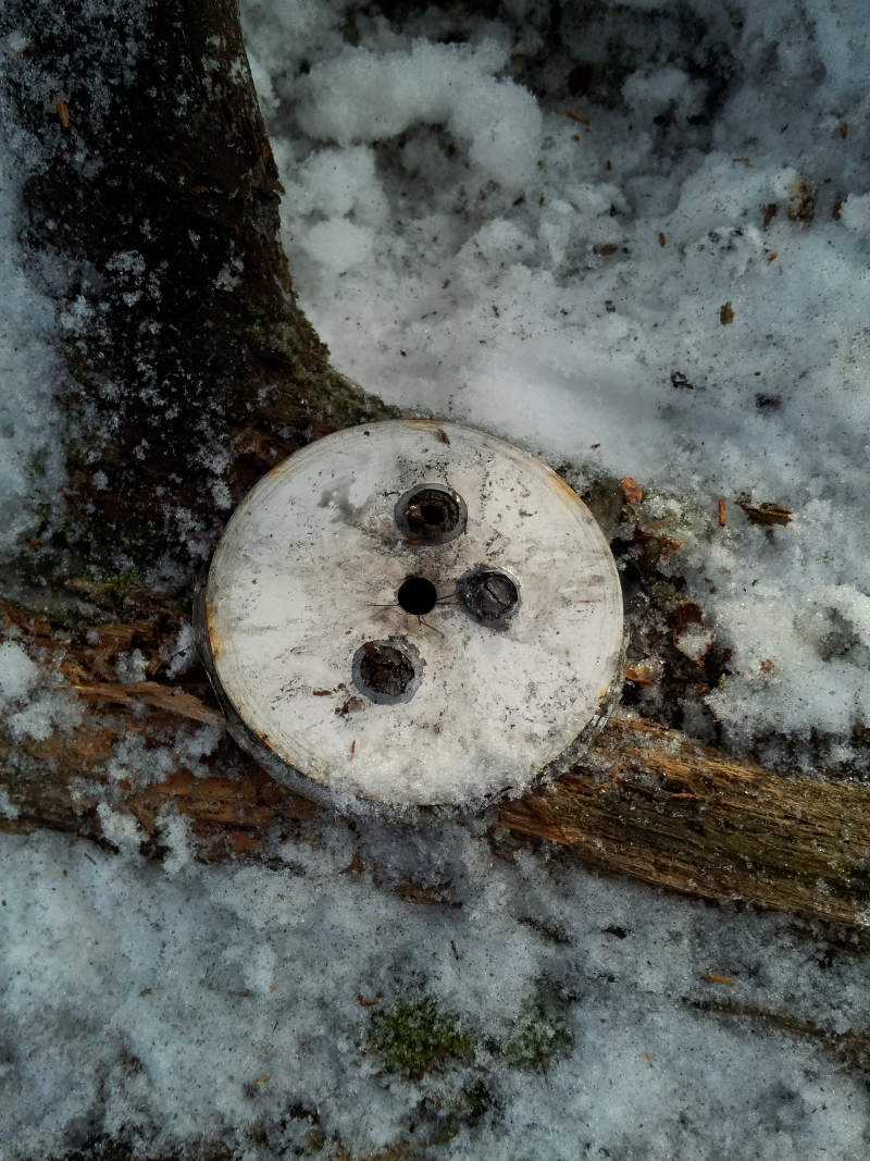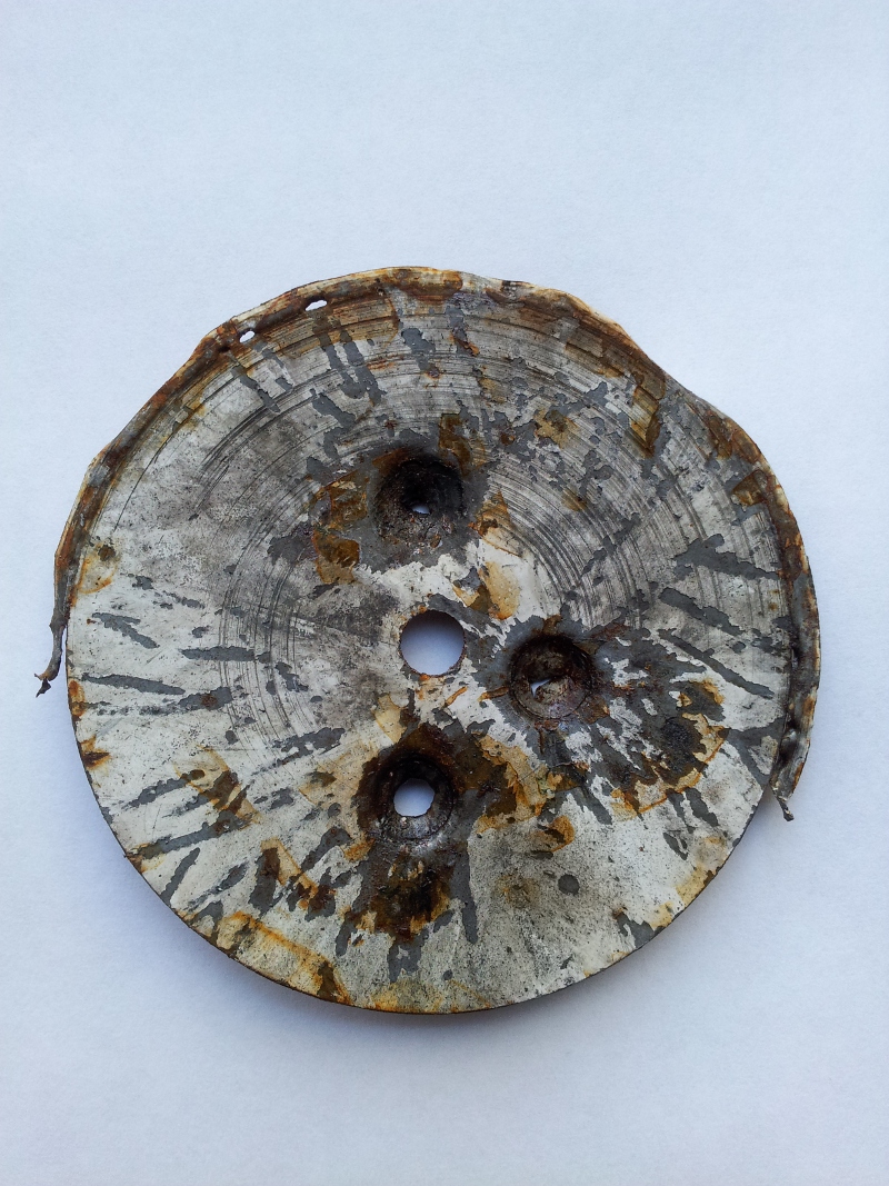 Pictures of the top and bottom of the witness plate. The hole to the right is from the last test.