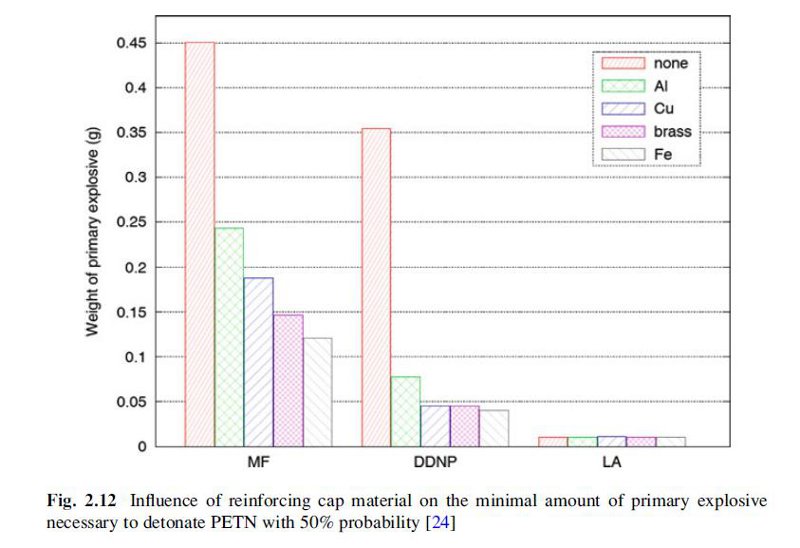 It is important to note that the efficiency of DDNP benefits greatly from the extra confinement provided by the reinforcing cap, whereas with lead