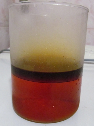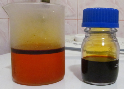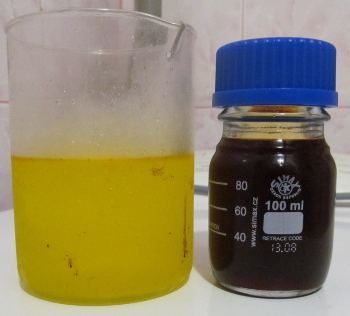 Then I added 50 more grams of NaOCl, keeping the solution acidic. The result you can see on the last picture. I don't think that addition changed
