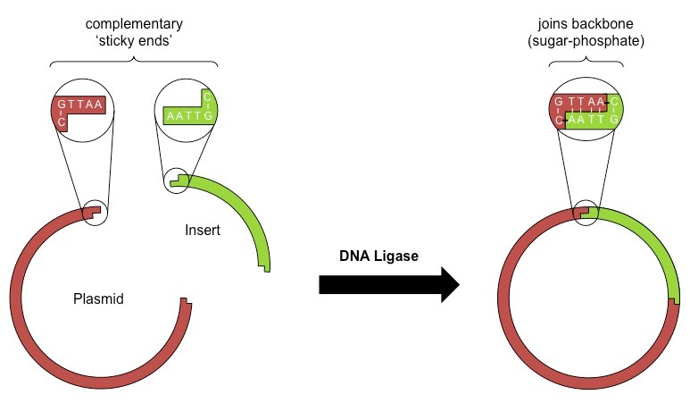 •T4 DNA ligase. A typical reaction for inserting a fragment into a plasmid vector (subcloning)