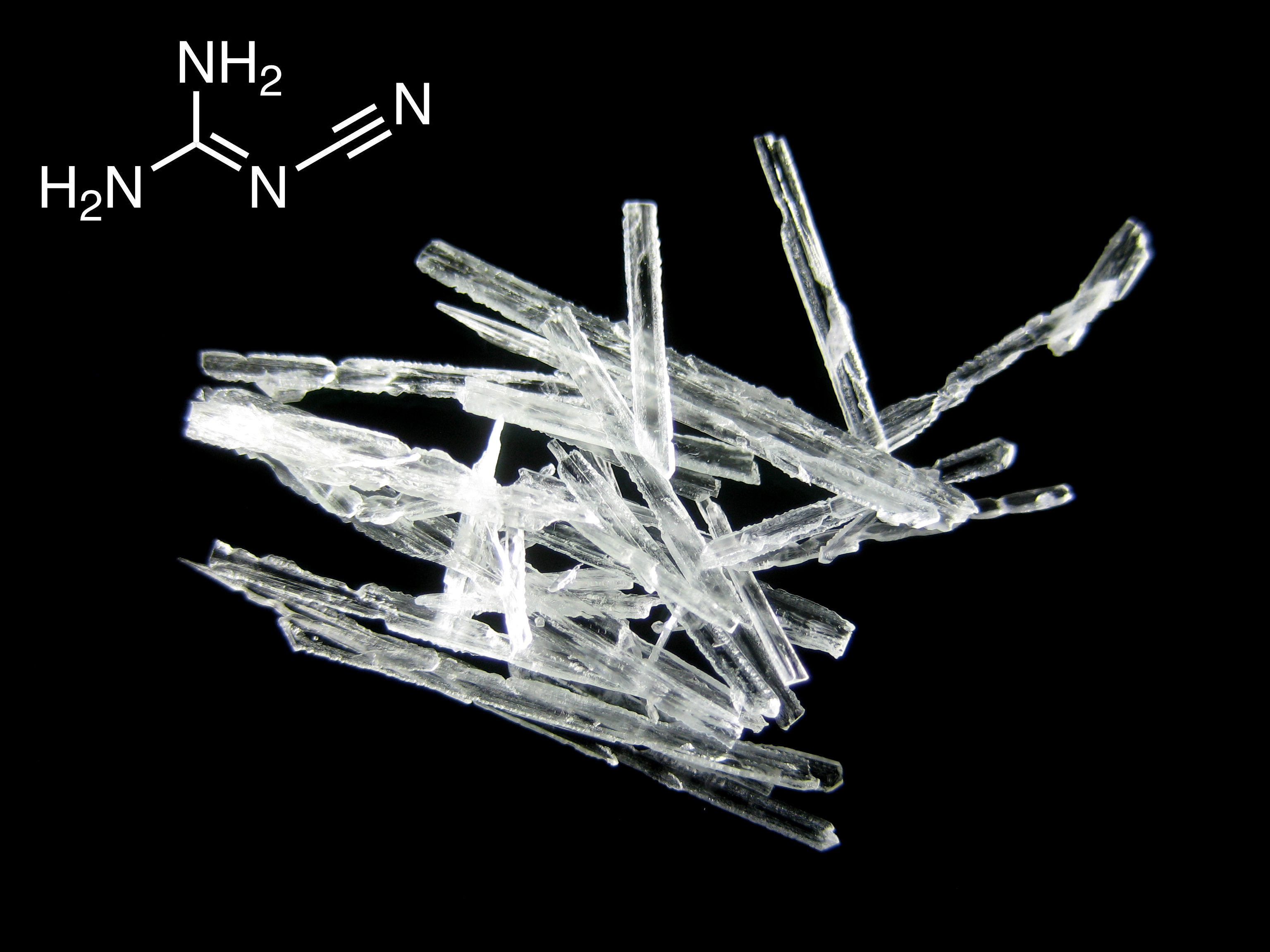 20:43, 14 August 2023 Dicyandiamide initial needles.jpg (file) 159 KB Needle-shaped crystals of dicyandiamide/cyanoguanidine crystallizing from boiled calcium cyanamide fertilizer solution. 1
