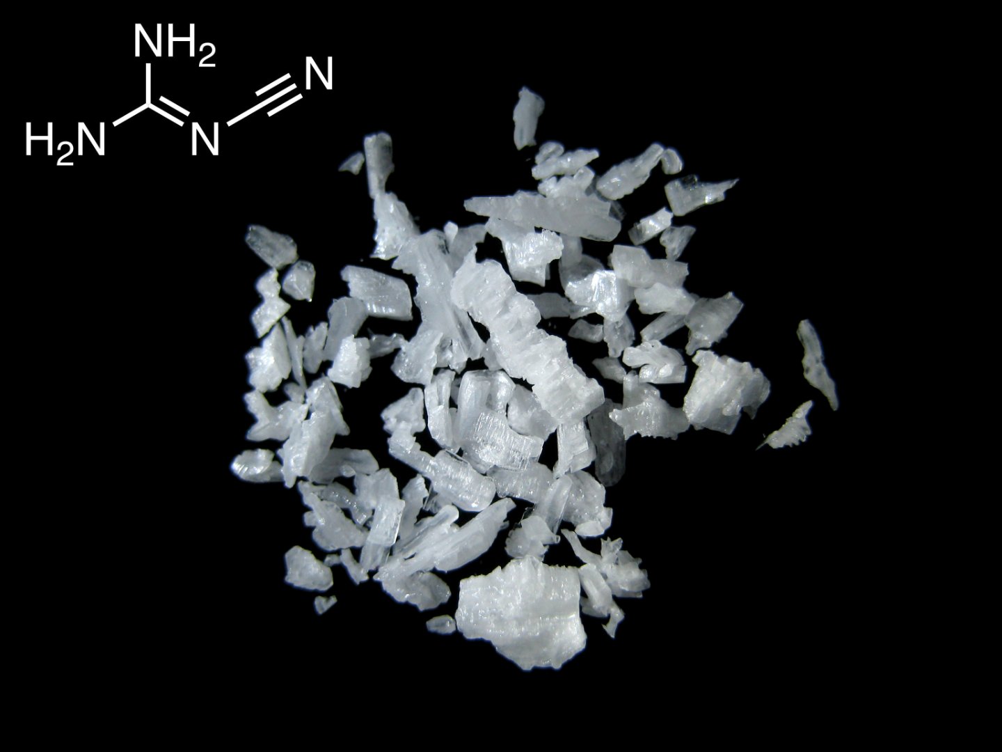 Revision as of 20:44, 14 August 2023 by Diachrynic (Talk | contribs) (Crystal aggregates of dicyandiamide/cyanoguanidine after being recrystallized from water, close-up.)