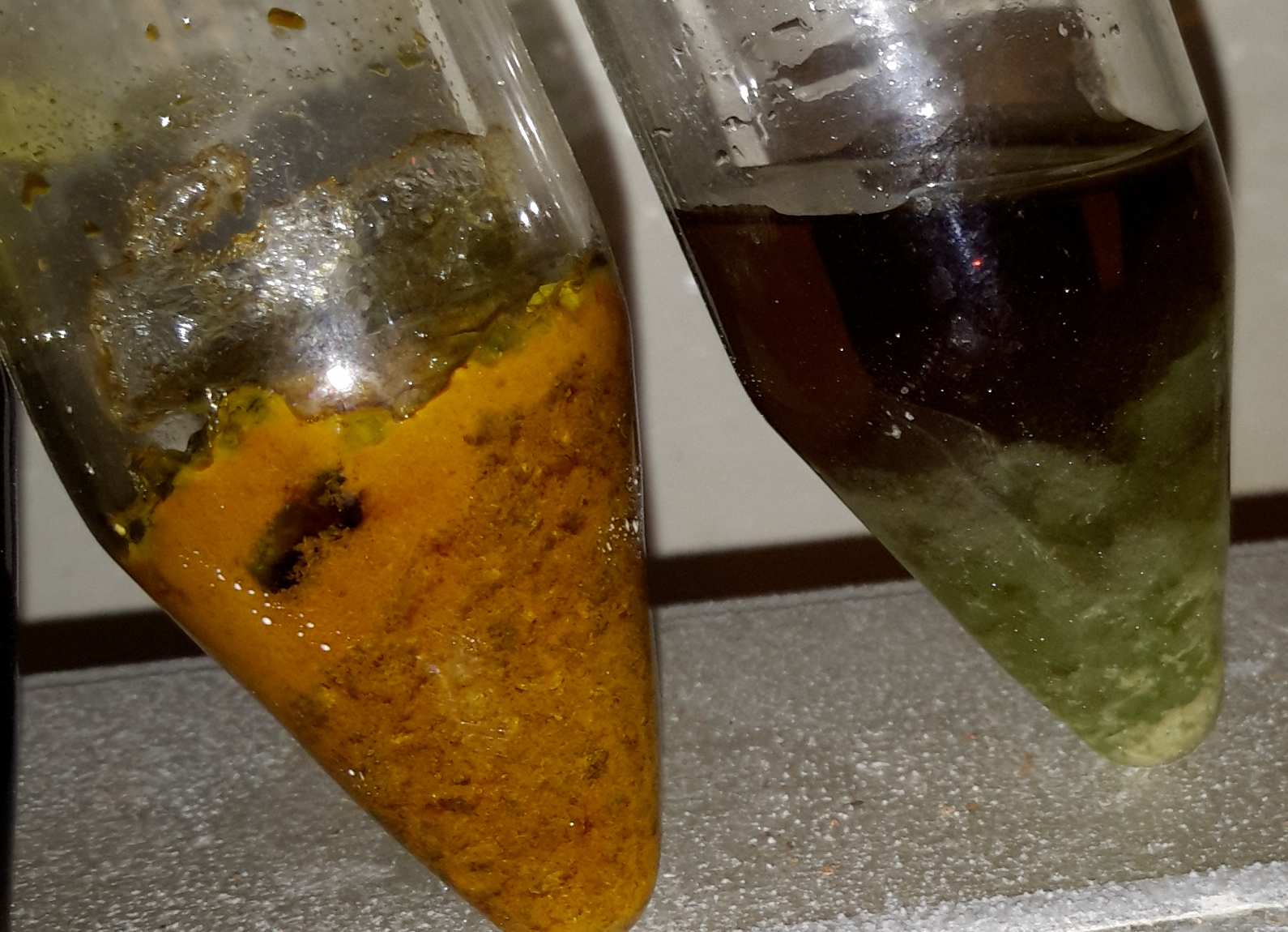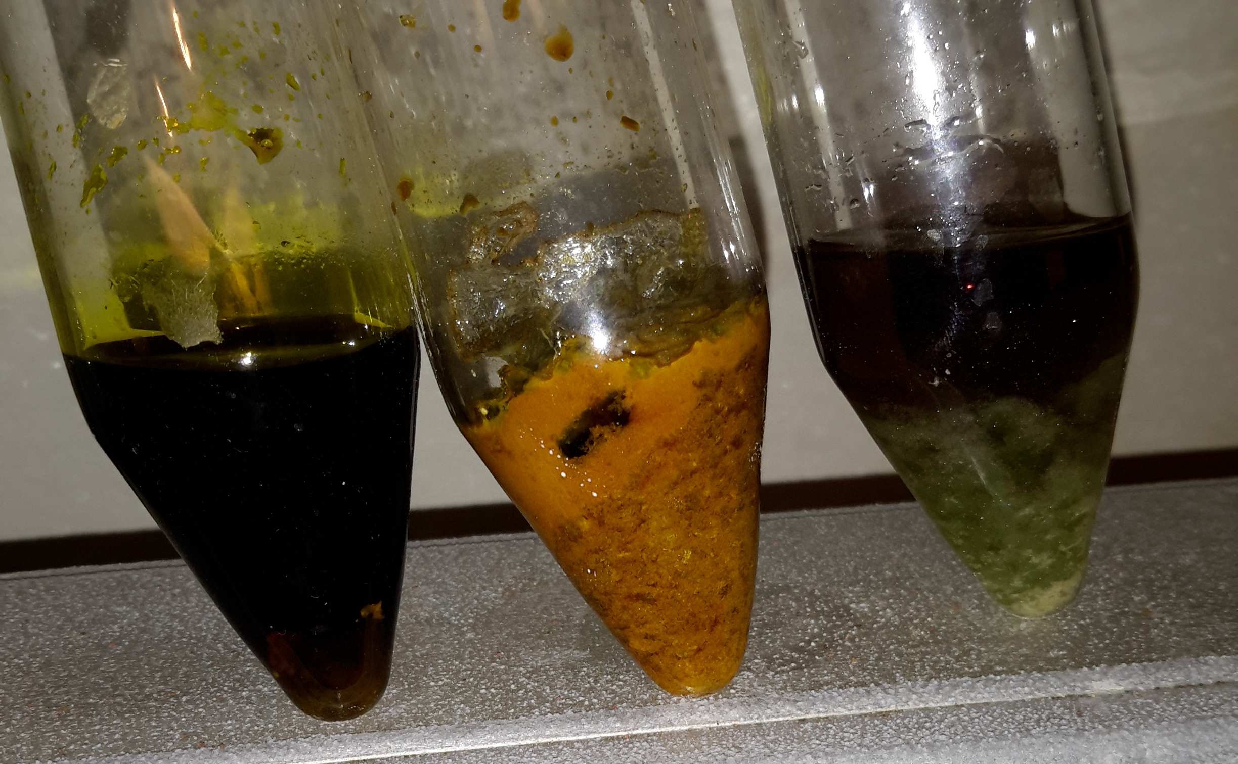 In the pictures of the vials, IDK of you can see the images of the nice green crystals in the vial where I added H2SO4, but they turned out really