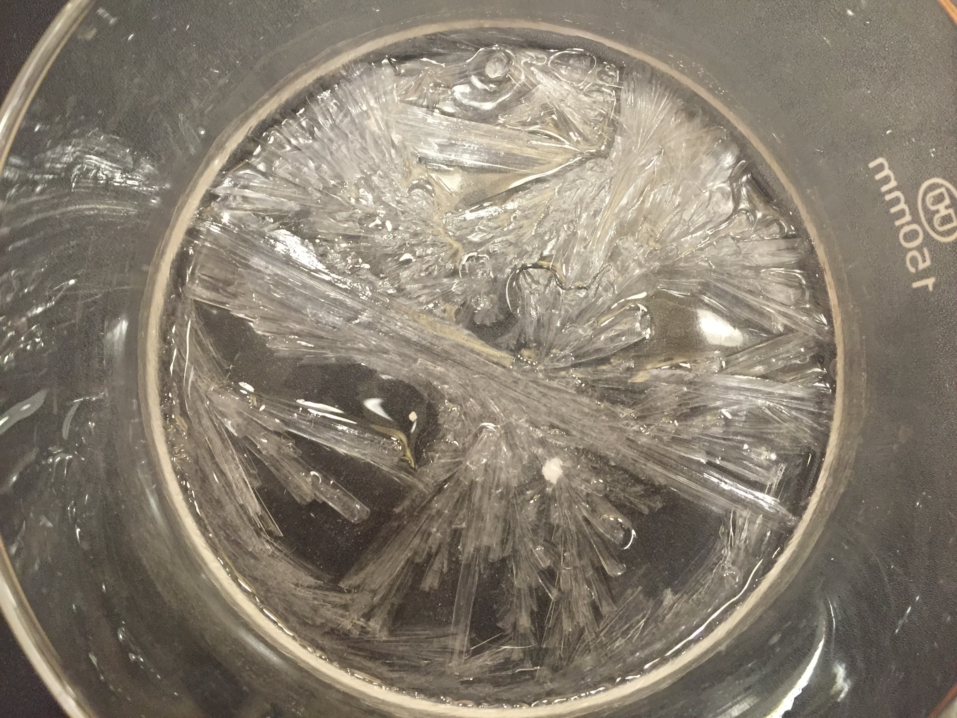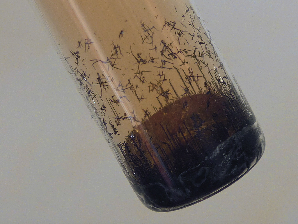 Crystals on the near side of the ampoule:
