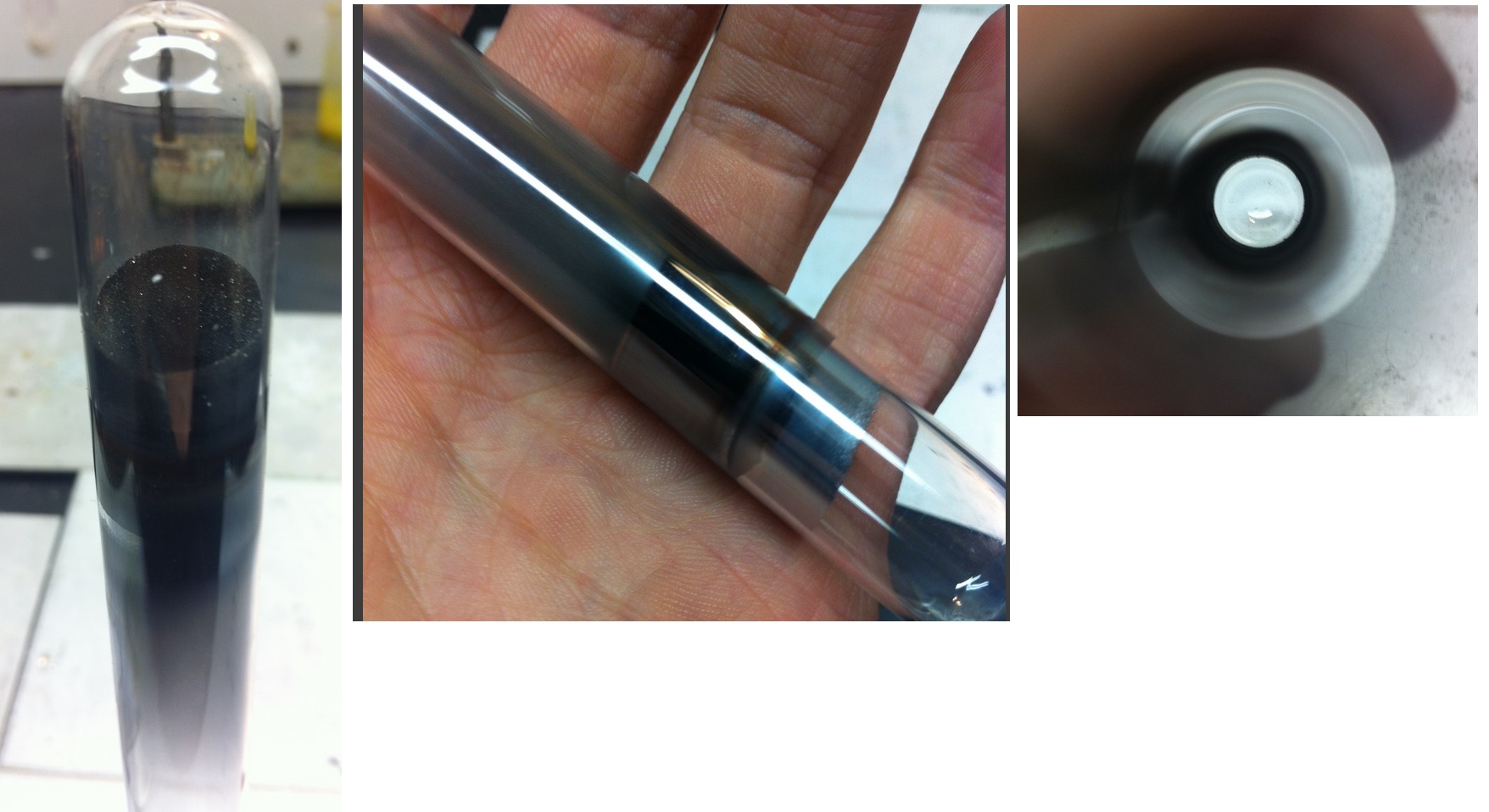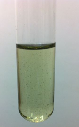 One week later, the crystals disappeared at one side of the ampoule, but they are still present on one side: