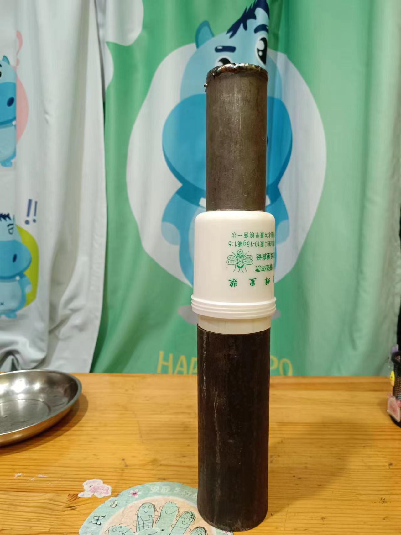about 5% PIB- tar, asphalt, clay, pine resin? a angled steel rod could be covered with aluminium foil for very easy release of a somewhat sticky