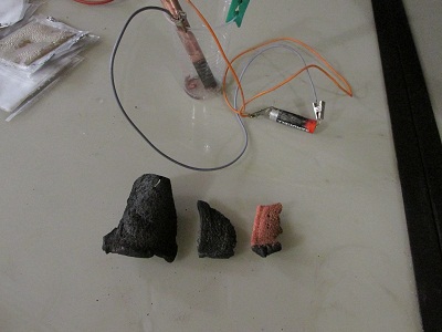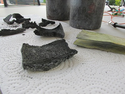 time. Soggy bread with boric acid, same with Mg(OH)2, charred bits with some of each, same bread with nothing on it, couple cotton balls
