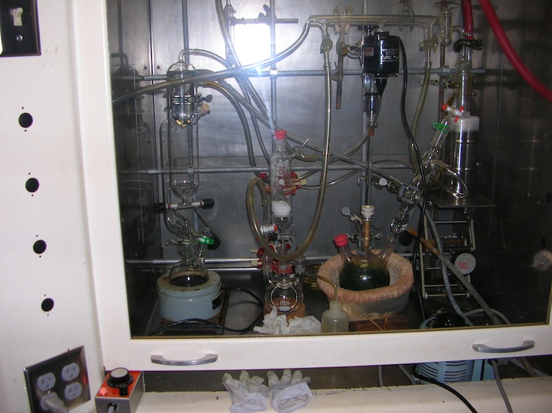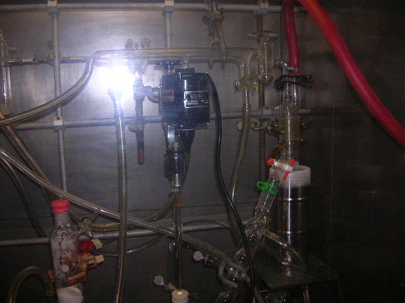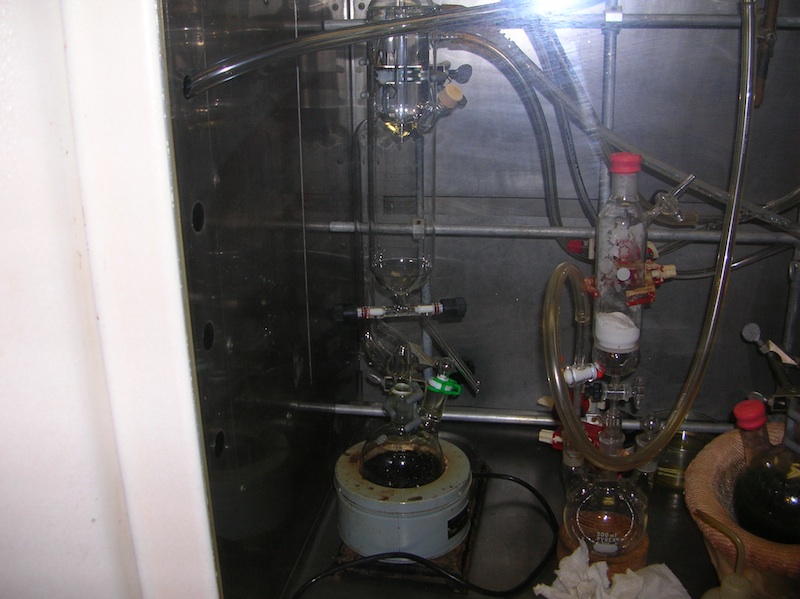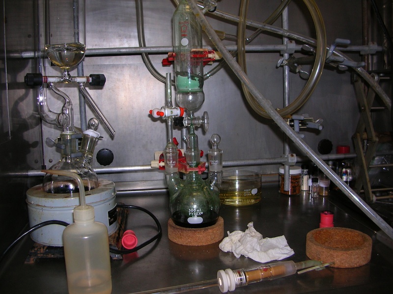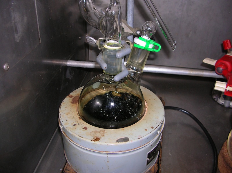 Boiling fertiliser in water was the simplest way to extract the urea from all the other junk. I boiled it in a soda lime mason jar, the bottom of