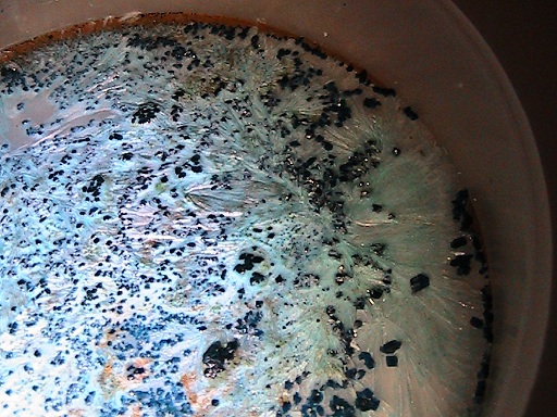 which blew off and made a mess. I mopped up all the water solution and put it in another jar to dry, where I forgot it until today. This is why my