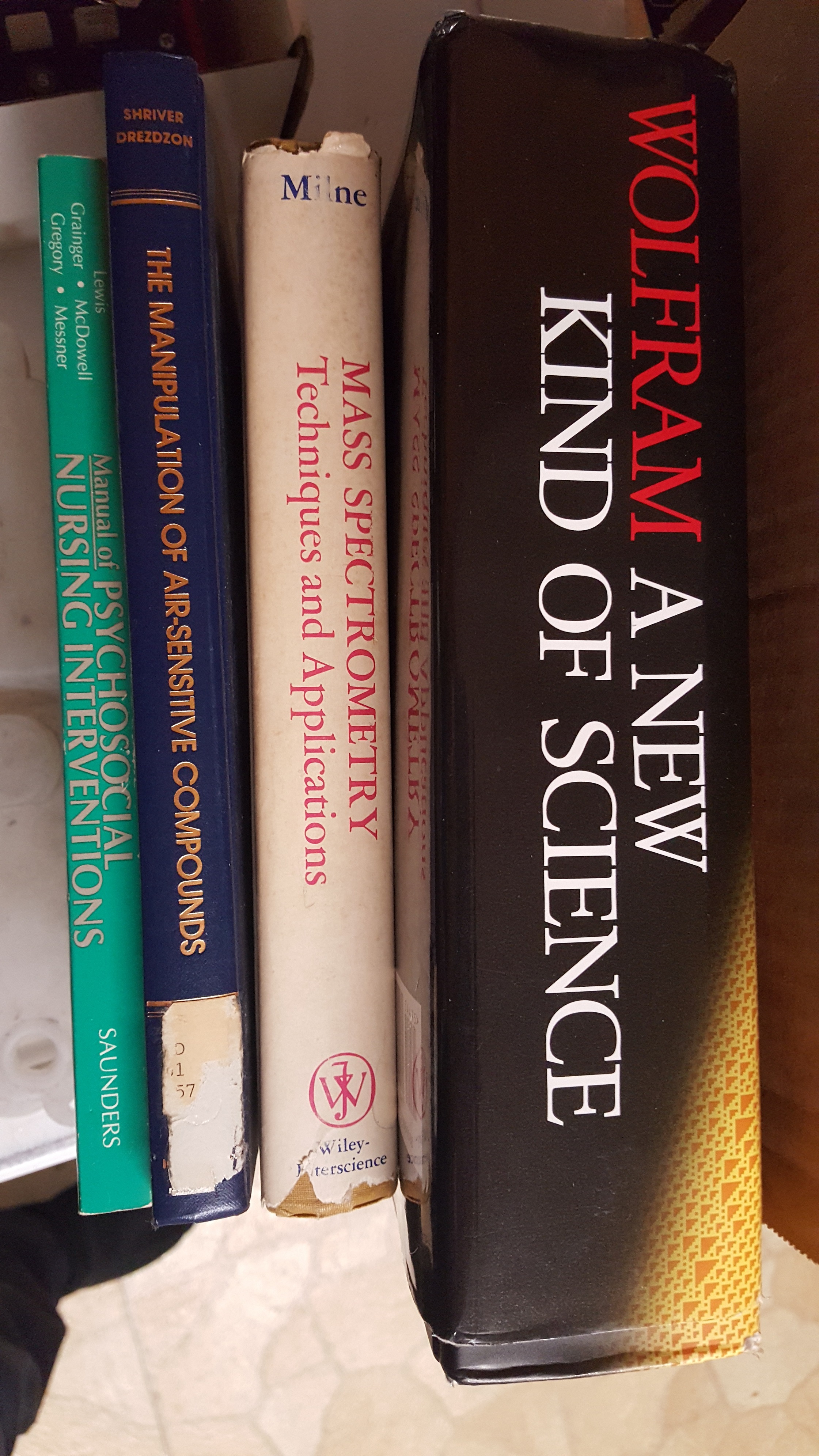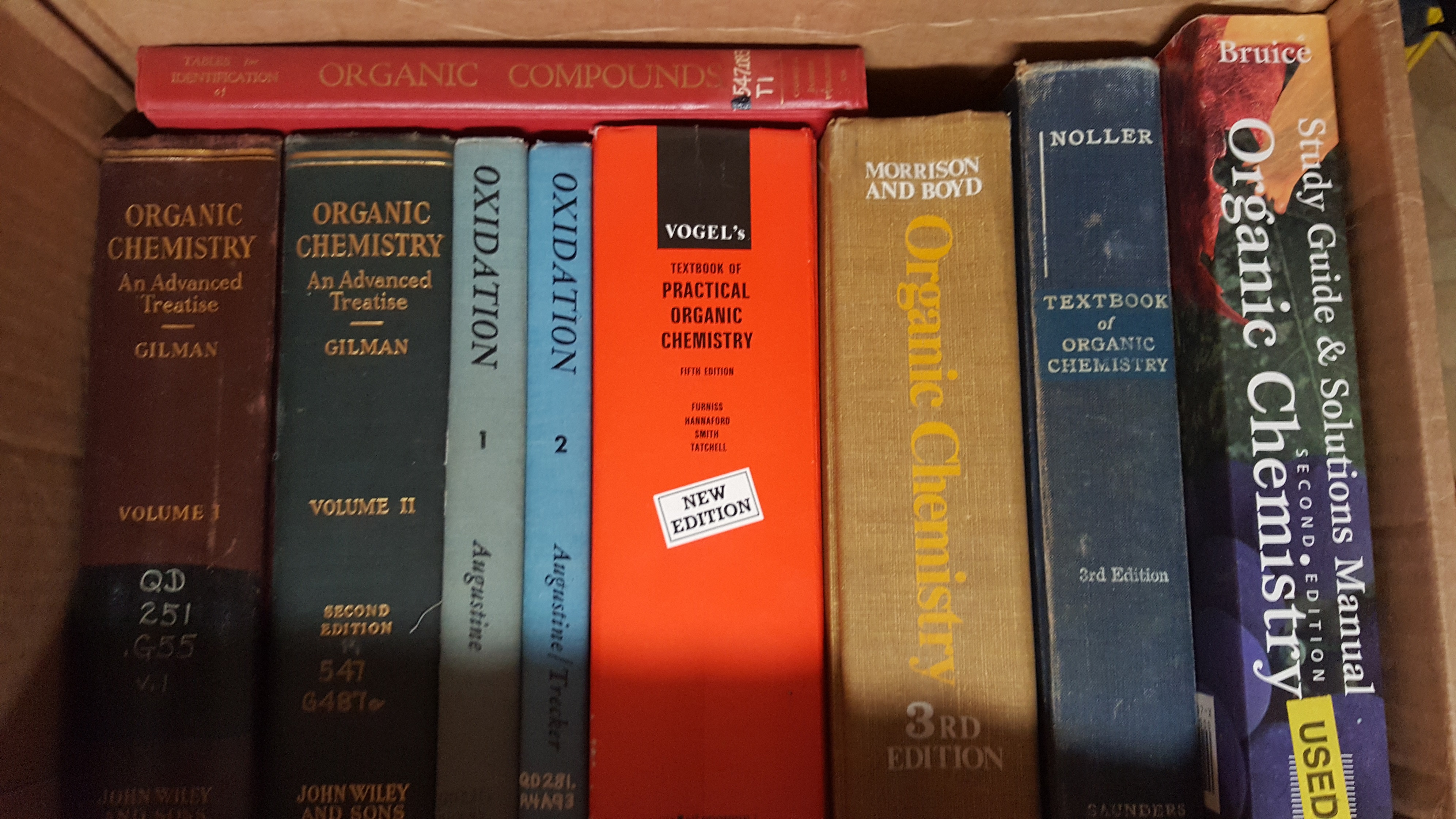are looking for any chemistry or science books, please send me a rough idea of topics or list of subjects/titles and I can try to find you a box of