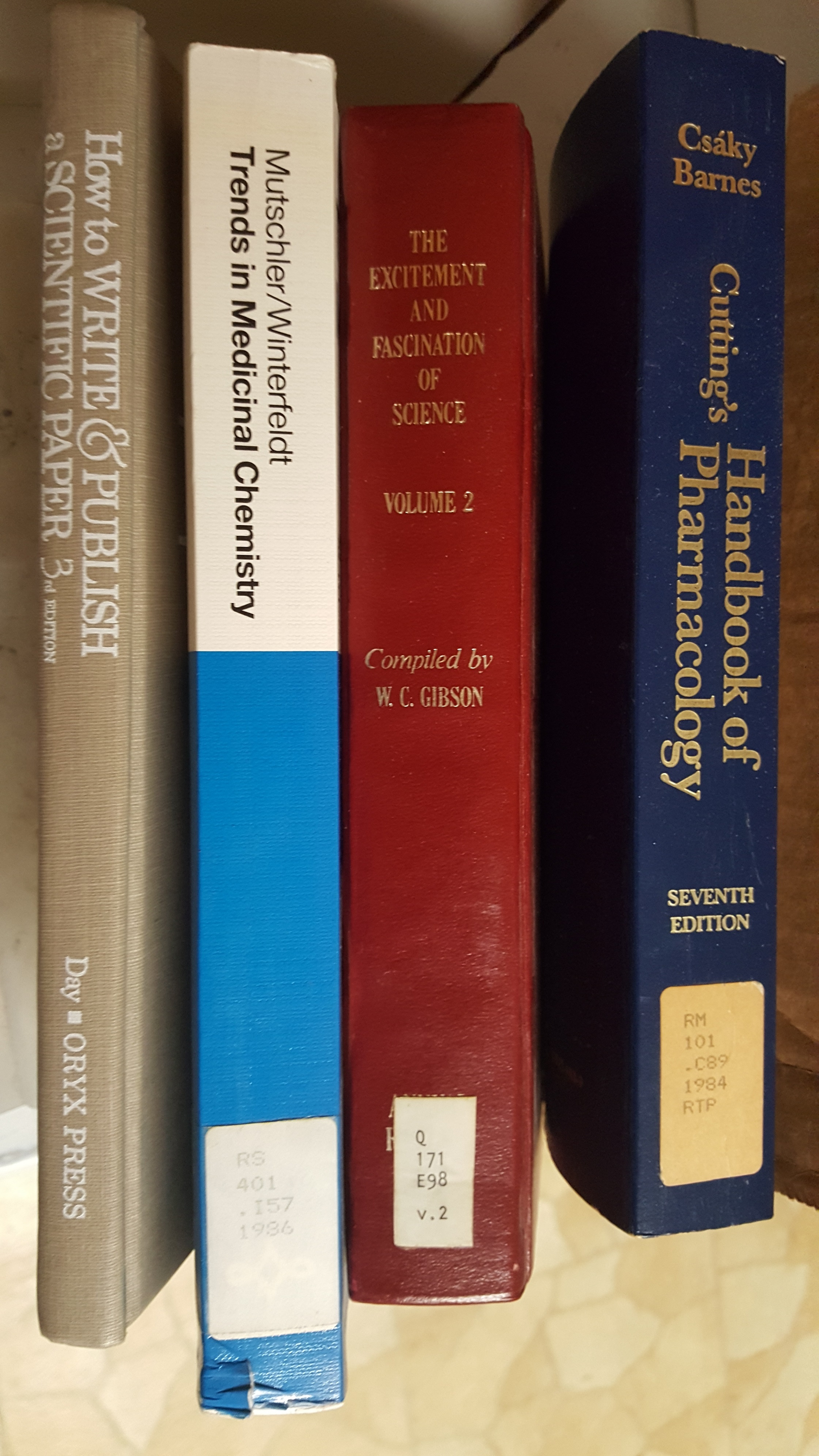 toxicology/carcinogeniesis/safety and related books. I sent one person a whole box of chemistry books for about $9 in postage. If you will be in
