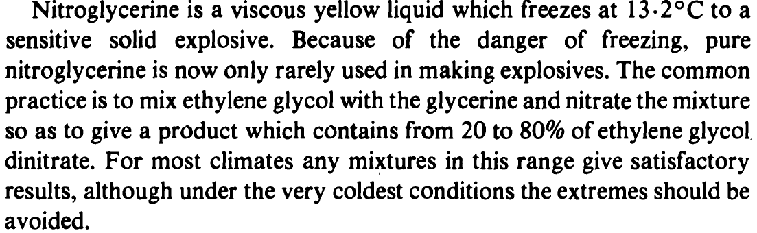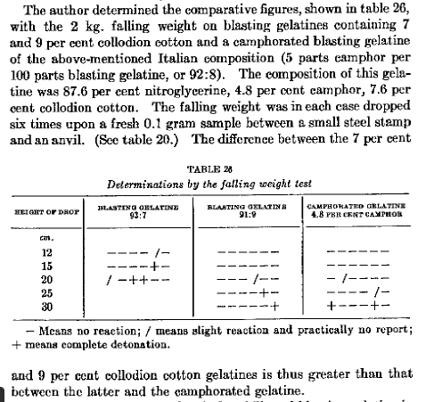 of how sensitive dry, pure NG can be. Hammering a small drop of damp NG fresh from the washing operation on a scrap of filter paper (steel hammer on