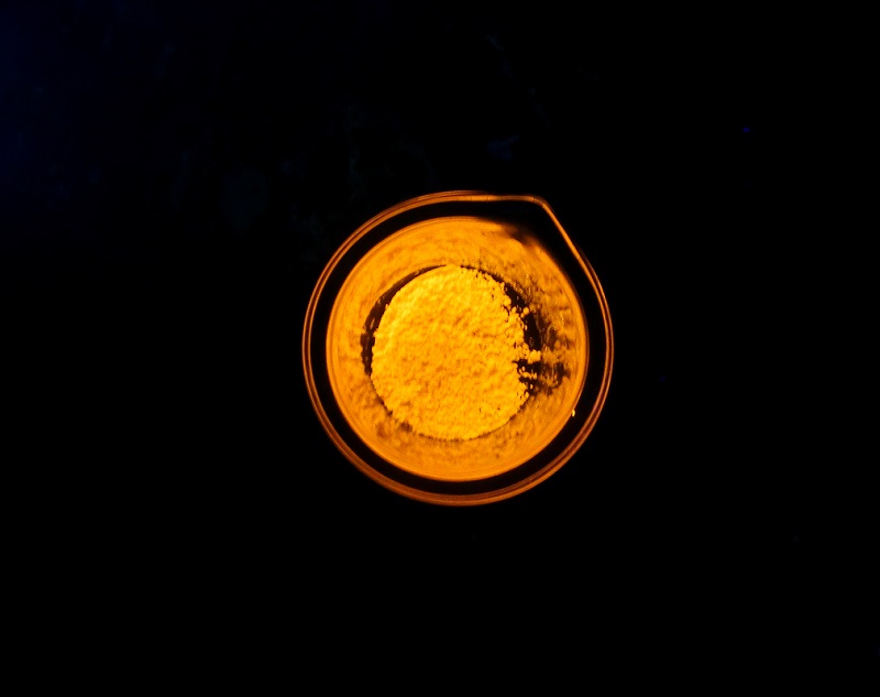 like saran wrap, strangely enough. My large jar of the rest of my pound of sodium, which I keep sealed most of the time, has no yellow whatsoever.