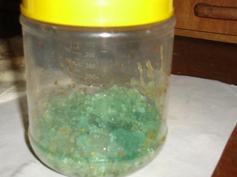 from the crystals into a second dish which was floated on water at 10°-15° and cooled on the surface as before when a second crop of crystals was