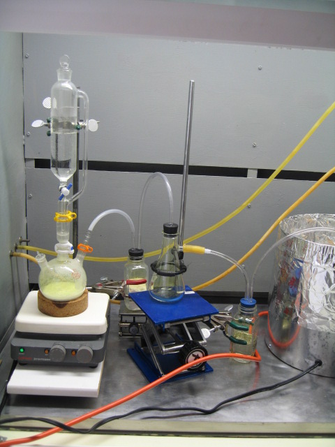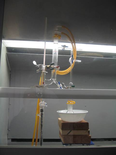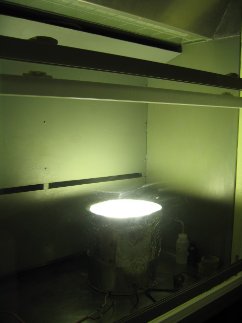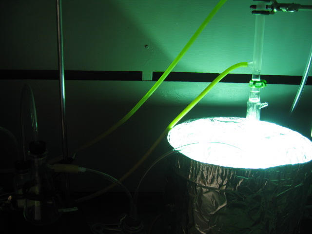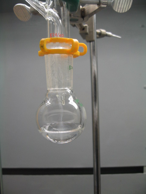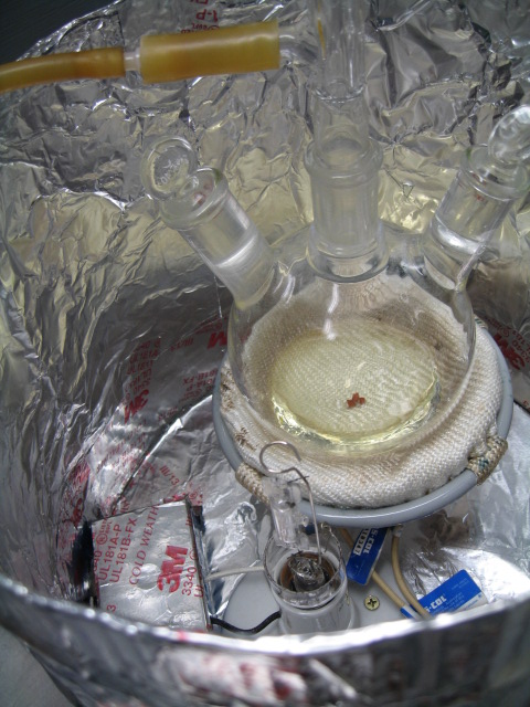 finger). The heat produced by the bulb will simply boil the chloroform and be carried away by the cooling water in the condenser, so no problem. Make