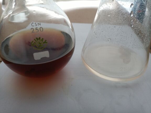 completing the neutralization (22 ml of HCl totally) - much paler product