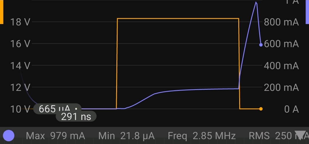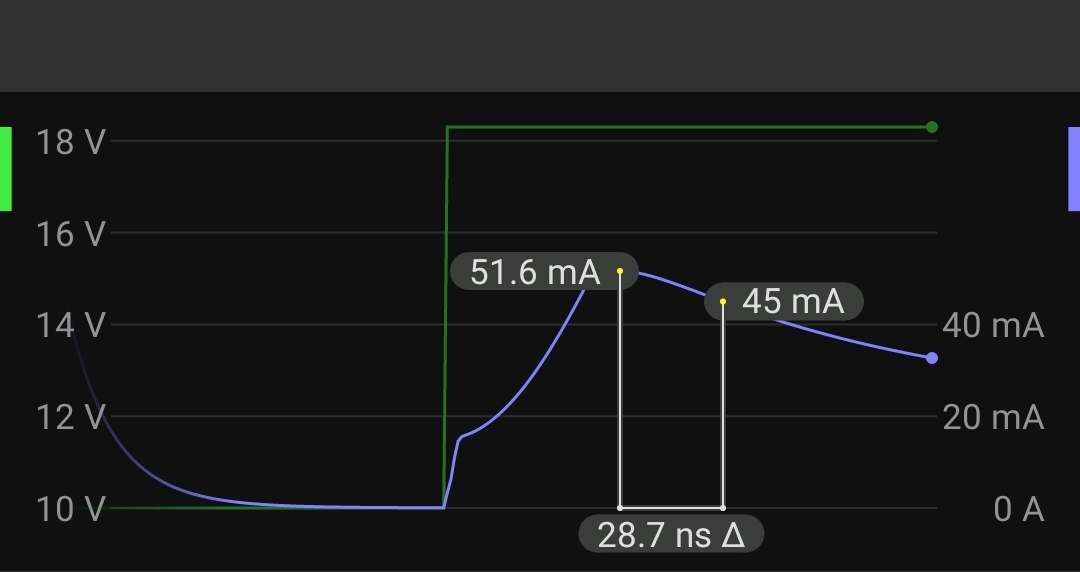 this equals an ideal charge time of 25ns(20MHz) and a rms of 47.3mA peeking at