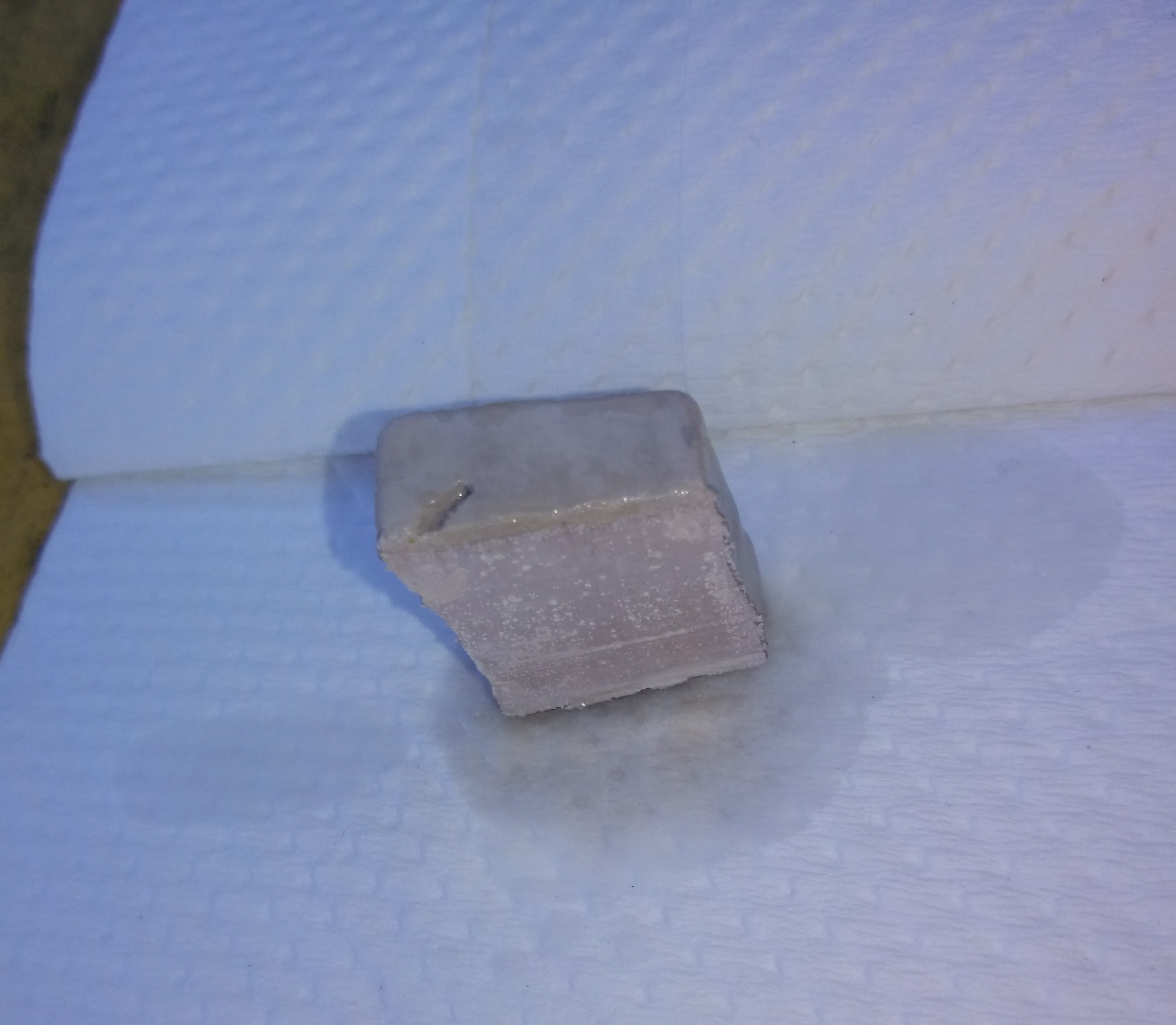 The red part reacted with water and oxygen and turned into a white mess.