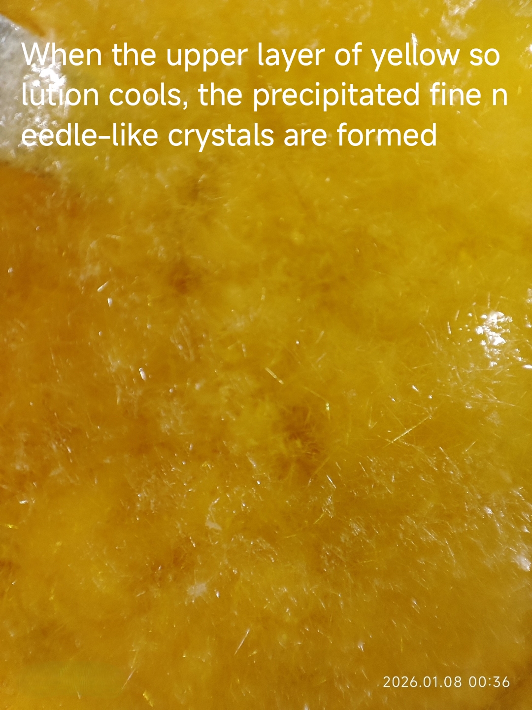 The low-melting-point D/TNPOEN-methanol complex is in the lower layer, and the yellow D/TNPOEN-H₂O-methanol solution is in the upper layer.
