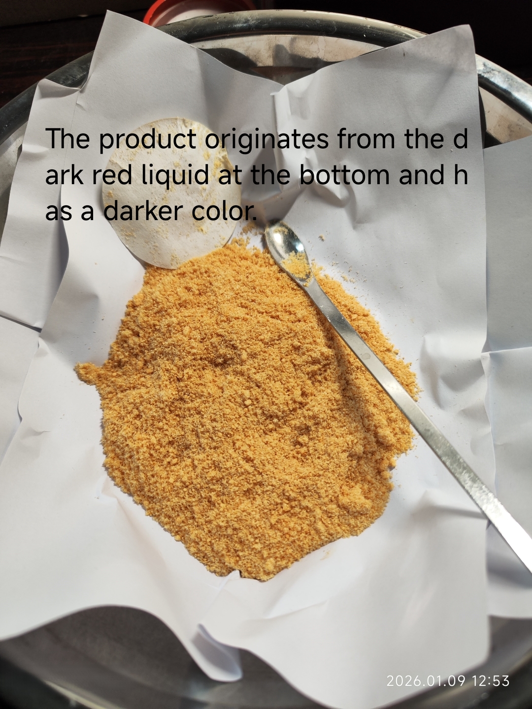Therefore, I dissolved and stabilized the remaining lumpy product again using acetone, ultimately obtaining only about a 30% yield.