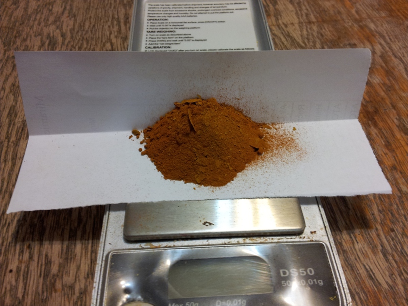 2-5 mg confined in aluminium foil (didn't want to make too much noise)