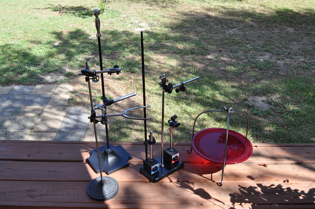 Yesterday I fiddled around in the garage and came across some magnet clamps purchased from Enco and thrift store stands bought a few years back. One